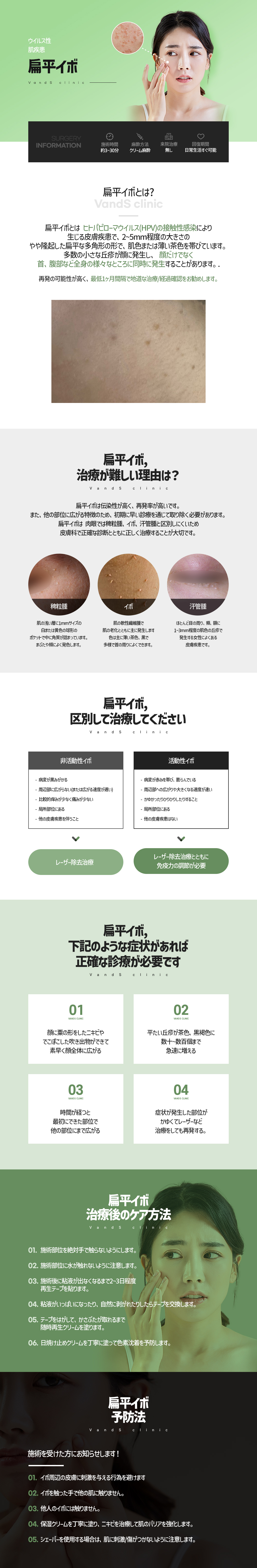 -顔に小さなブツブツやざらついたニキビができ、短期間で顔全体に広がった方 -症状が出ている部分にかゆみがあり、レーザーなどの治療をしても再発を繰り返している方 -平らなイボが茶色〜黒褐色に変化し、数十〜数百個単位で急増している方